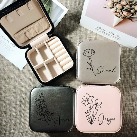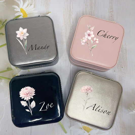 Birth Month Flower Travel Jewellery Box with Name