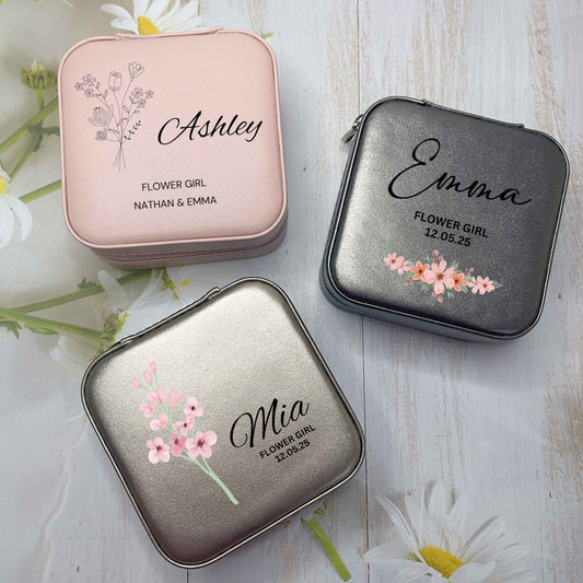 Flower Girl Travel Jewellery Box with Name