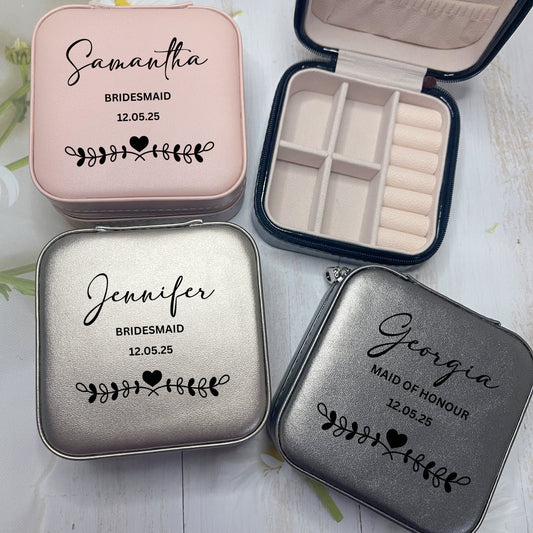 Bridesmaid Travel Jewellery Box with Name
