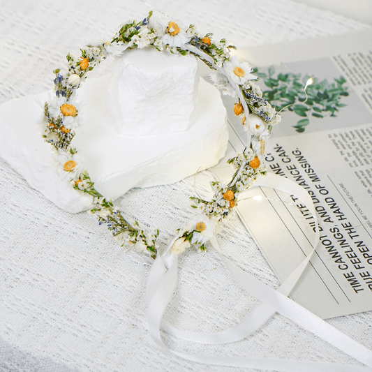 Dried Daisy Flower Crown – Rustic Wedding Halo for Brides & Flower Girls