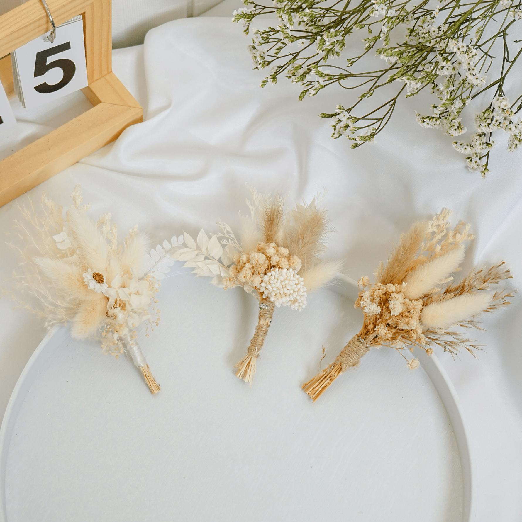 Dreamy White Dried Flower Wedding Boutonniere
