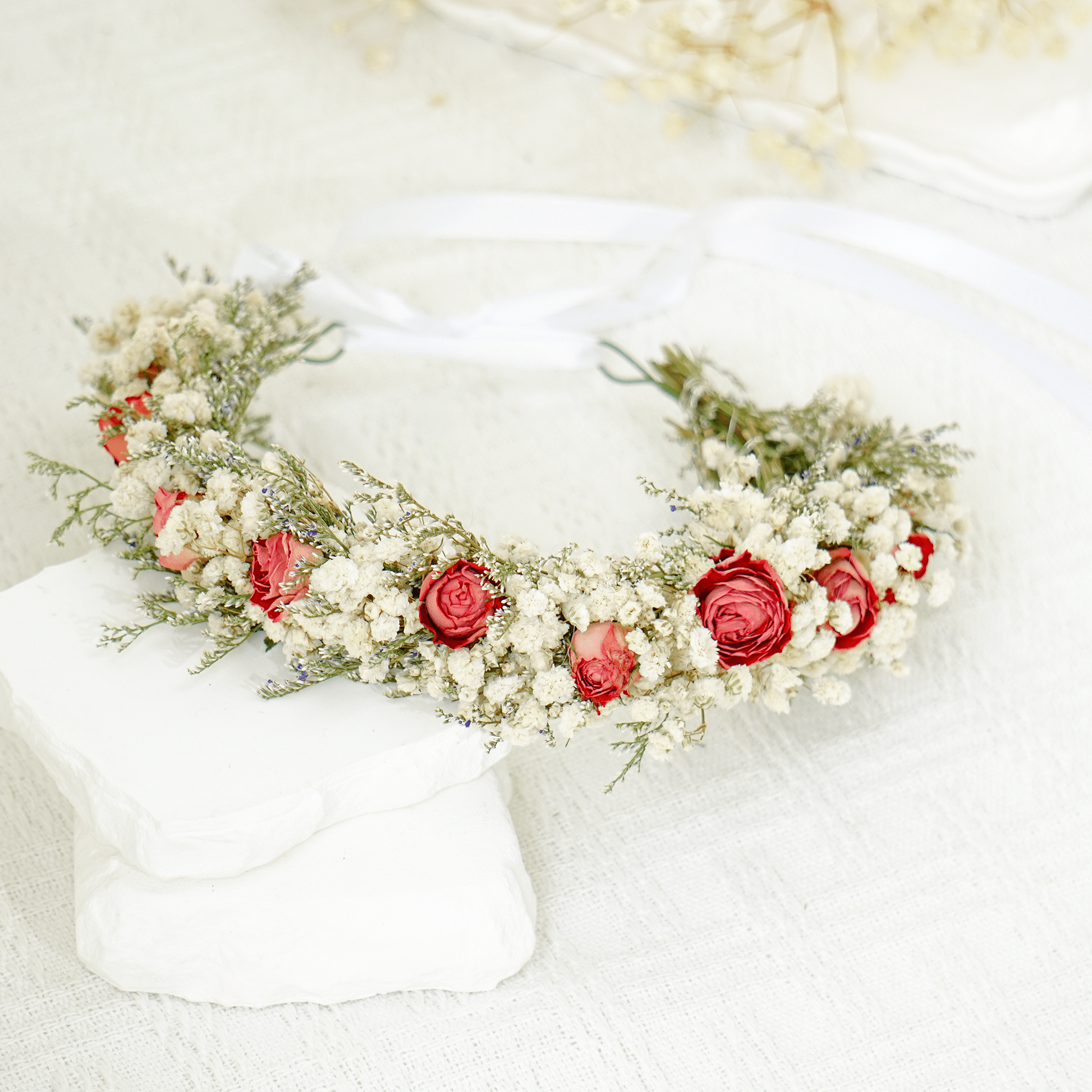 Romantic White Baby’s Breath & Rose Flower Crown